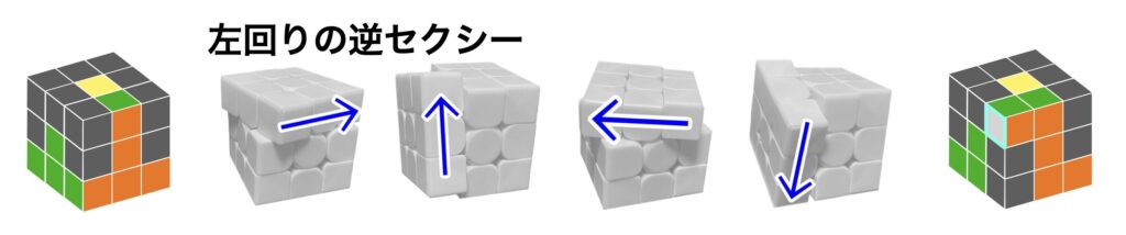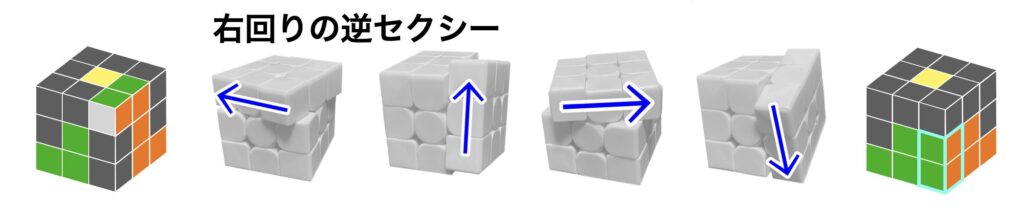左回りの逆セクシーを回すと白コーナーが揃う(水色枠)