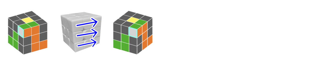 左回りの逆セクシーを回すと真ん中の段と白コーナーが揃う(水色枠)